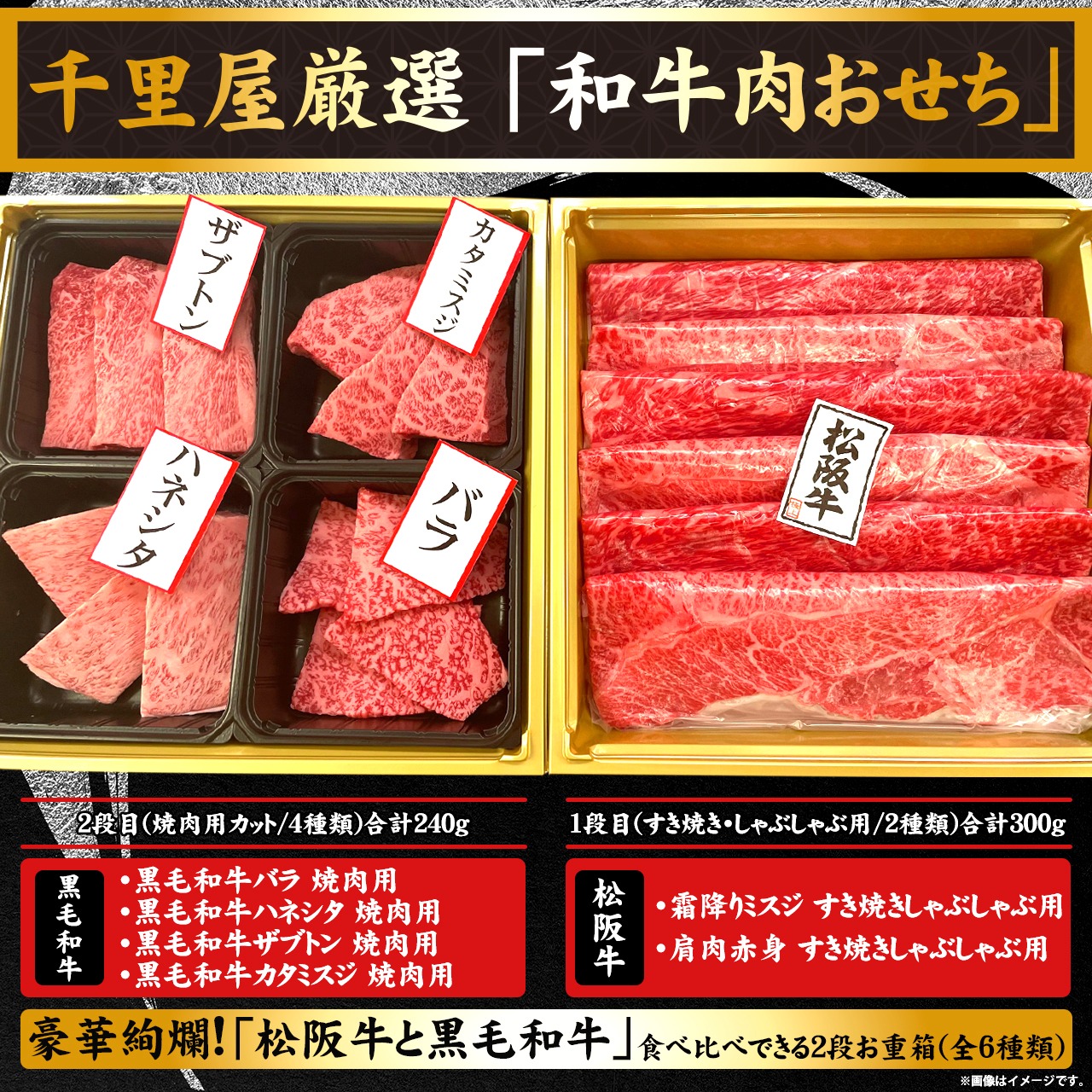 【豪華2段/全6種類】松阪牛・黒毛和牛食べ比べ 千里屋厳選 和牛肉おせち