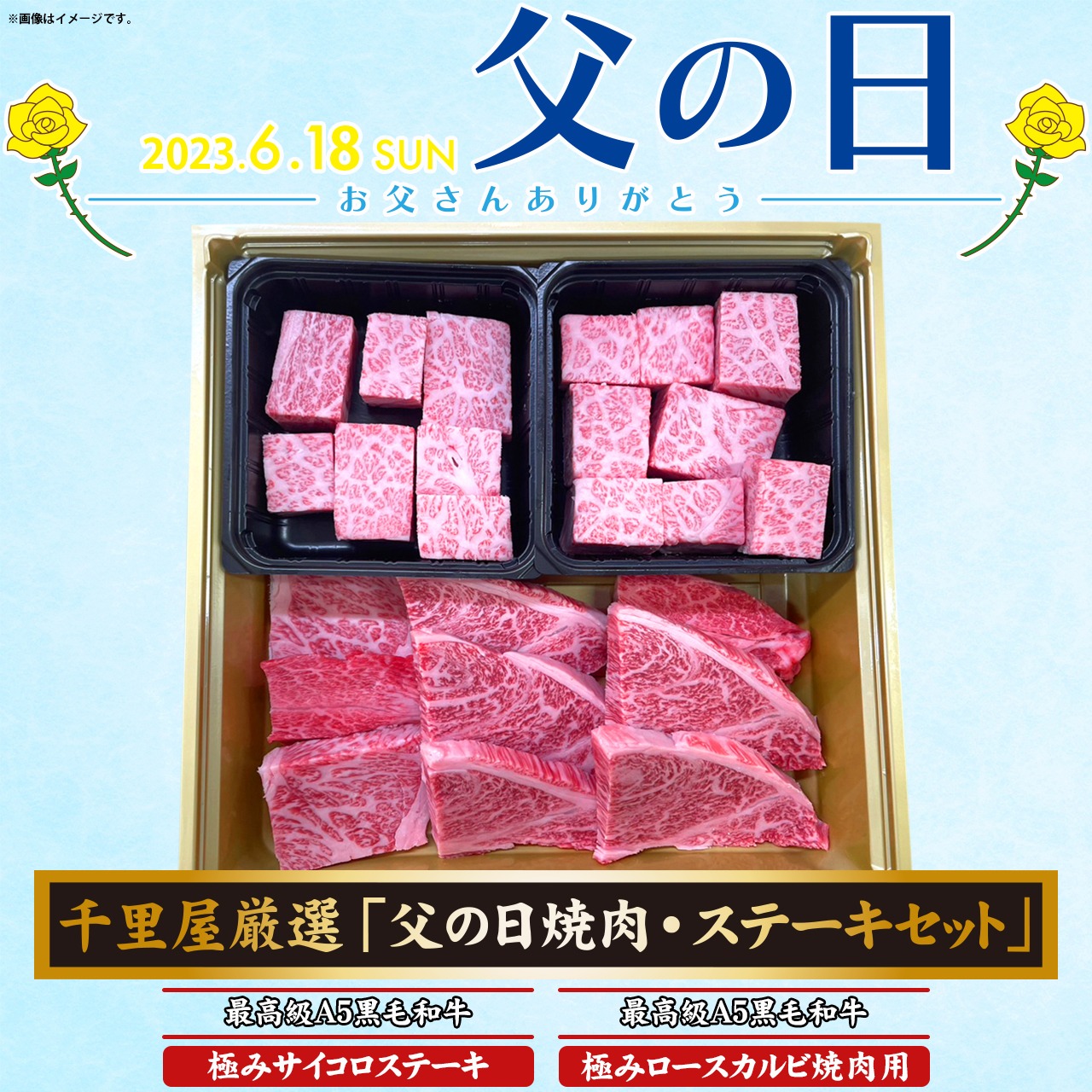 肉工房千里屋が厳選するお肉を牛(ギュッ)と詰め込んだ父の日限定「焼肉・ステーキセット」が誕生しました。A5ランク黒毛和牛のサイコロステーキ・ロースカルビを思う存分お召上がり頂ける父の日もちろんの事、内祝などの贈答としても喜んで頂ける商品となっております。