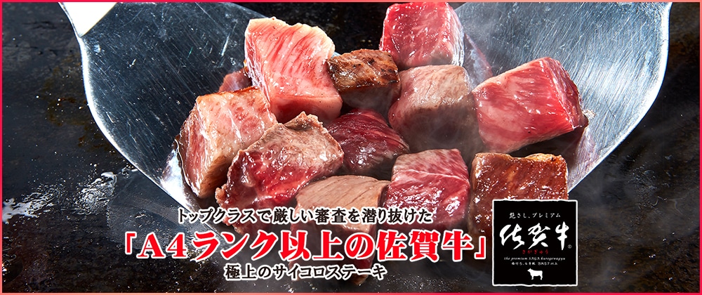 最も大きな部位のひとつで背中から肩にかけてのロース肉の首に近く、比較的動かす部位なので、程よい食感と霜降り脂肪が適度にあり風味が良いお肉をサイコロ状にカットする事により食べやすくなりお肉本来の味をご堪能頂けます。厳しい審査を潜り抜けた日本が誇る高品質な佐賀牛の霜降りはキメ細やかで美しいです。